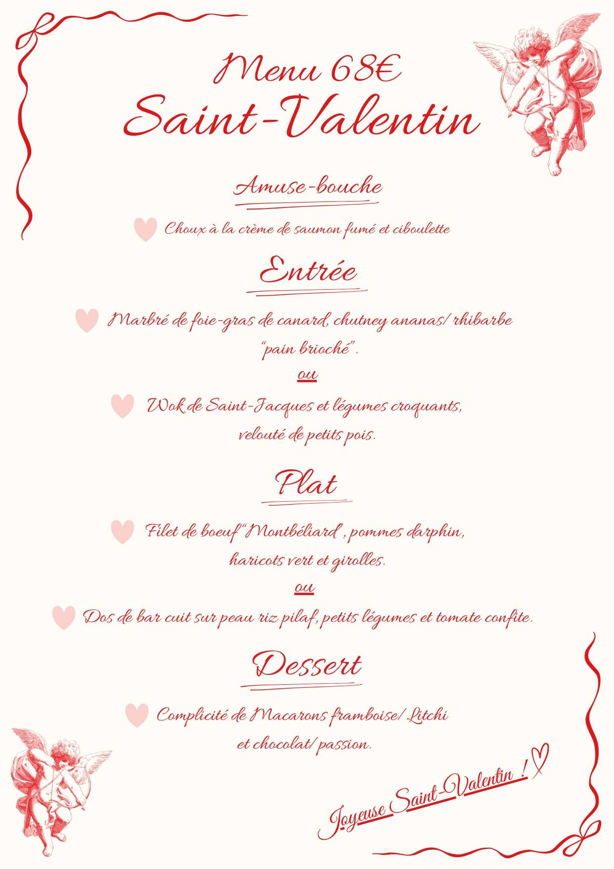 Ce menu sera proposé exclusivement au dîner du 14 février.